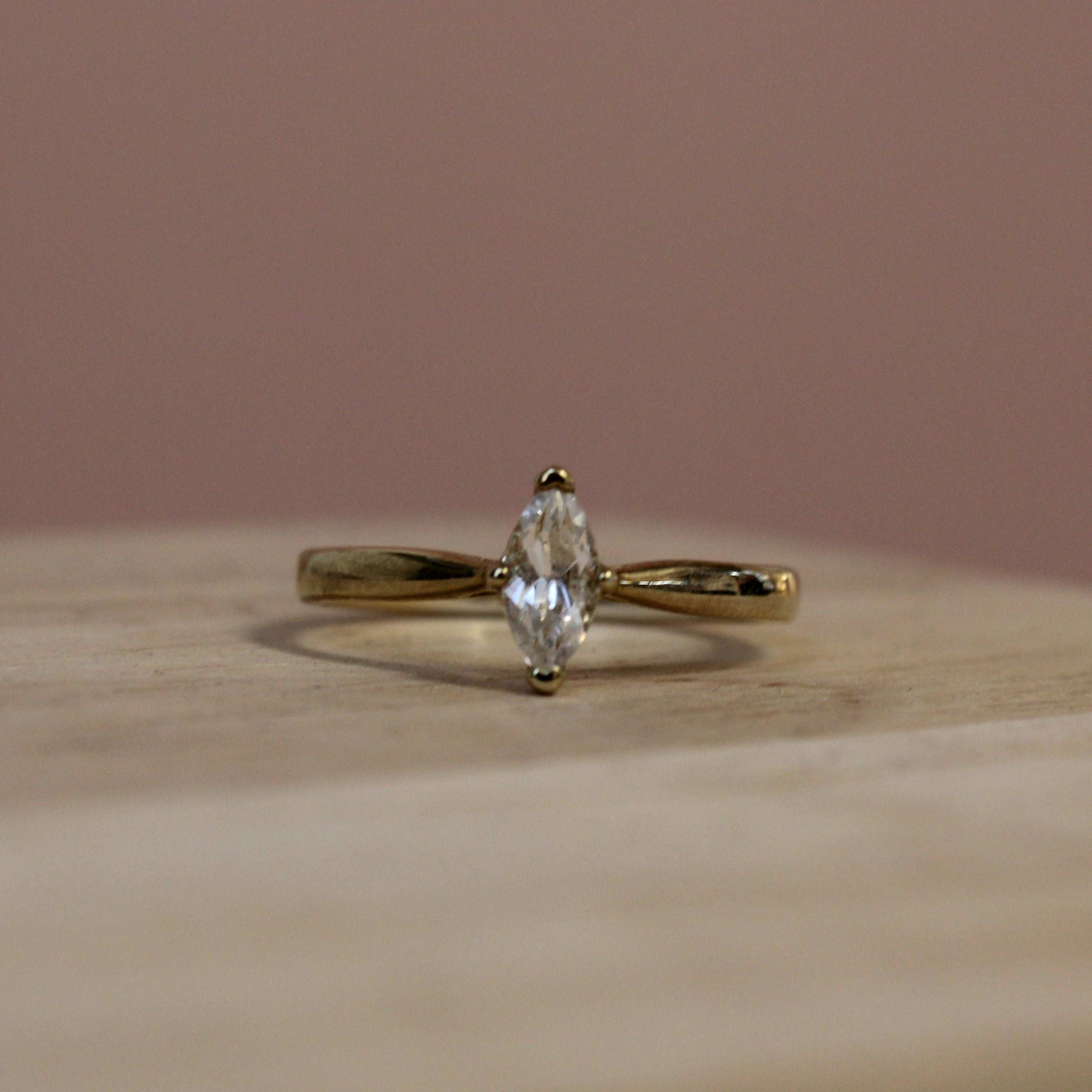 We love the simplicity of the solitaire and the elegance of the marquise diamond. 0.40cts.
