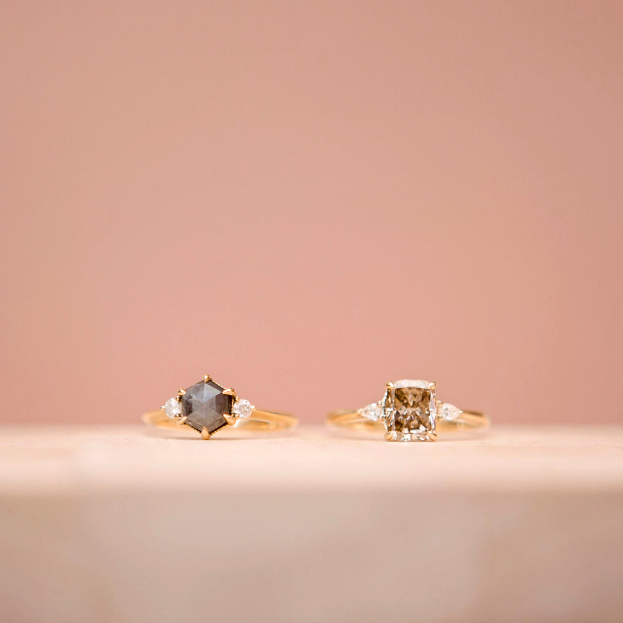 Not your usual shapes and styles but still designed and made to last a lifetime. Salt and Pepper Diamonds or Coloured and Old Cut Diamonds still make fabulous ring choices.