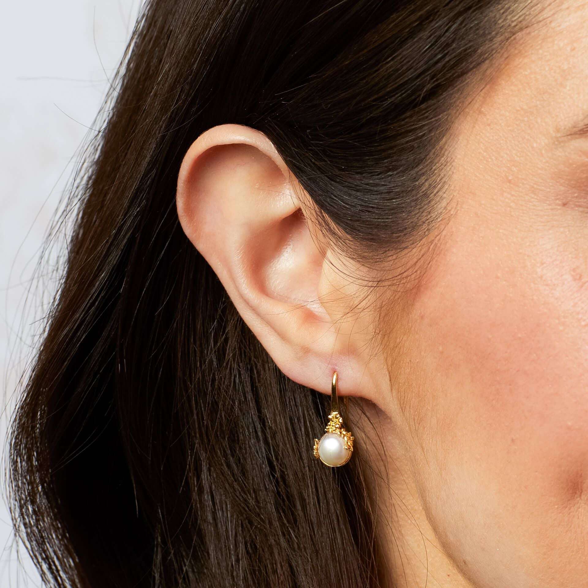 Inspired by the graceful curves and vintage charm of the Laura Ashley Ickleford Tulips print, these elegant earrings capture the quiet beauty of nature in bloom. Crafted in recycled sterling silver with a warm yellow gold plating, each earring features a lustrous freshwater pearl nestled among delicate golden blossoms, evoking the gentle stillness of a sunlit meadow. Feminine and timeless, they offer a touch of countryside romance to any look and are perfectly complemented by the matching necklace.