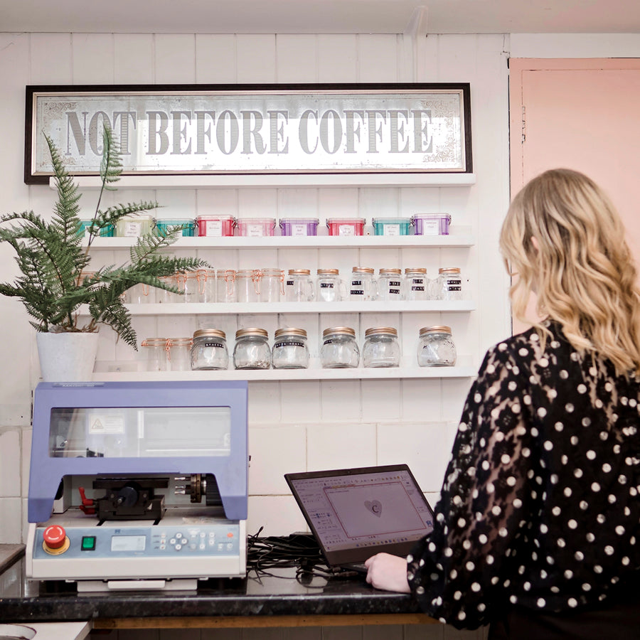 We handle all engraving in-house, so the possibilities are endless! Rebecca uses advanced online software to perfect your design before engraving it with our precision diamond-tipped engraver.