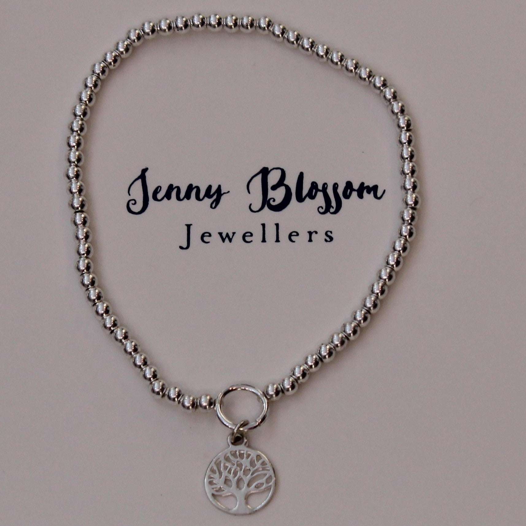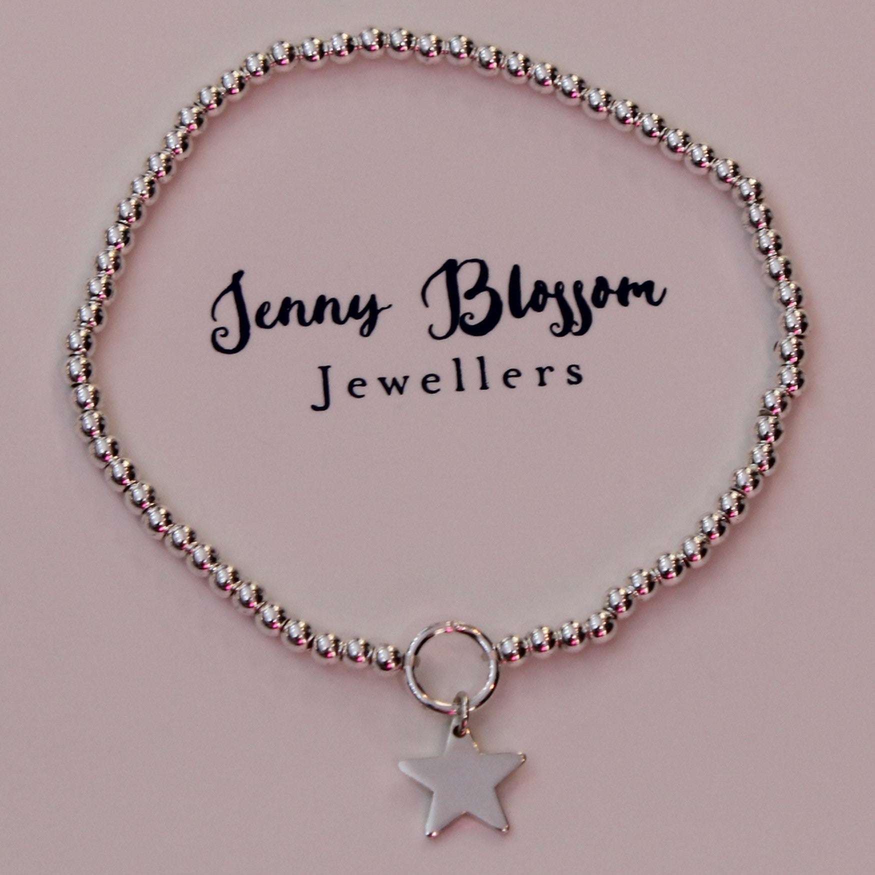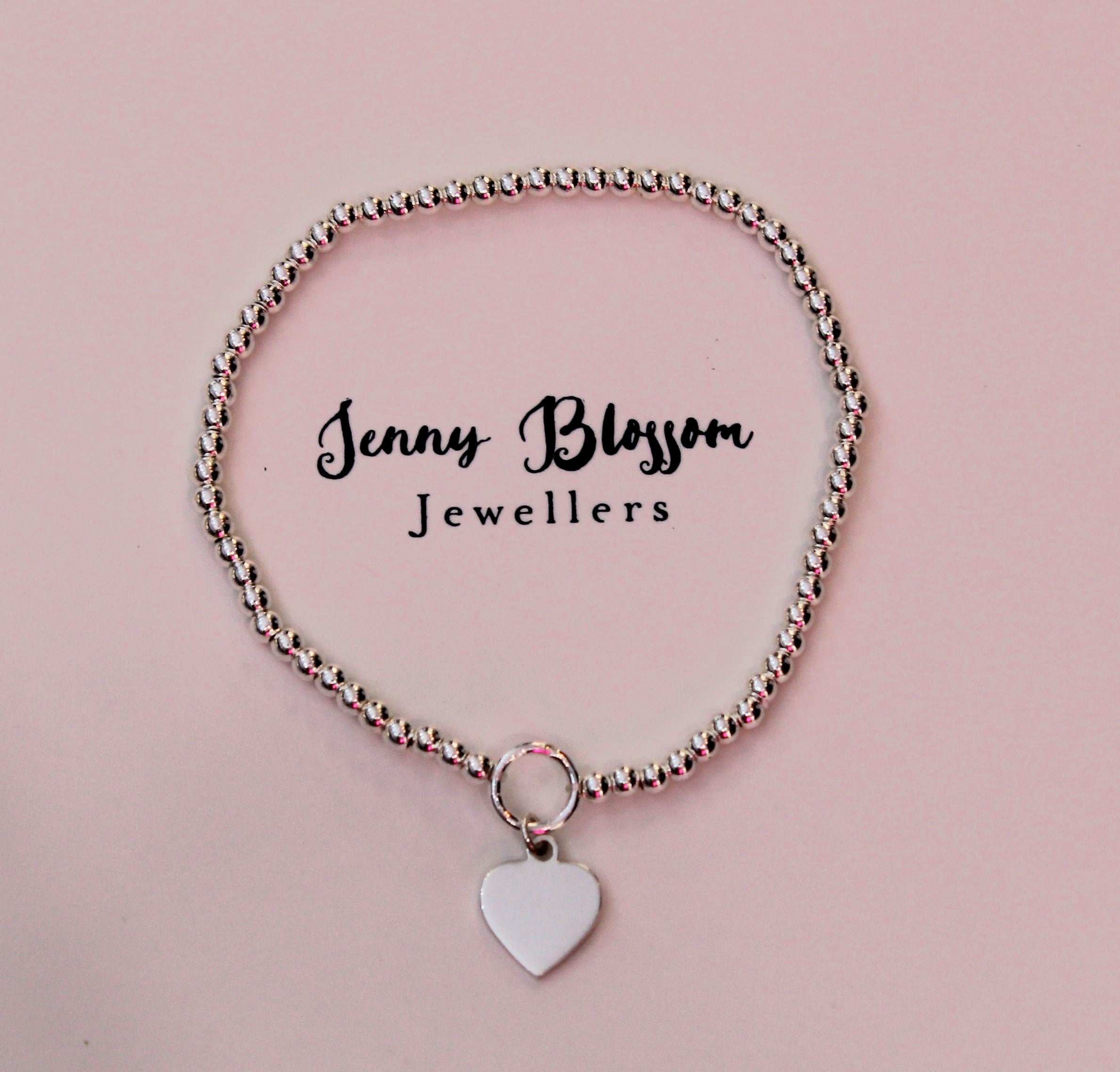Our best selling stretchy ball bracelets with a sterling silver charm we engrave free of charge.